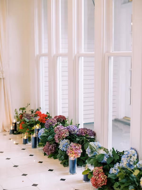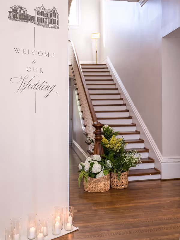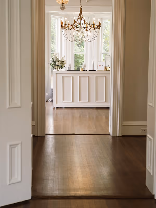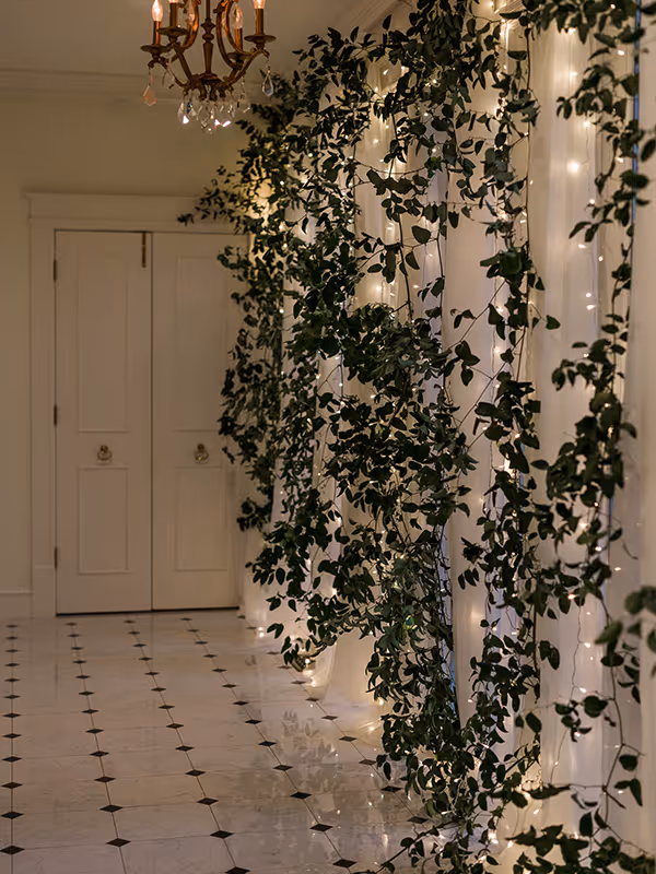 Whether serving as a transition between event spaces, a cocktail hour setting, or a striking photography location, The Hall creates a graceful connection between the home’s historic rooms.