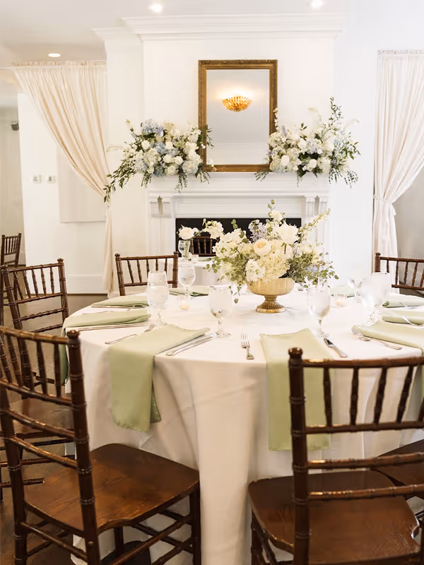 The Gant is the largest indoor event space at McAlister-Leftwich House and is located within the original McAlister House. Architectural details and historic character create a setting that feels both elegant and welcoming, making it ideal for wedding ceremonies, receptions, and special gatherings.